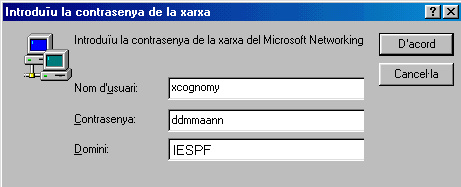 Cada vegada que inicieu l’ordinador us demana un nom d’usuari i contrasenya, cal estar donat d’alta com a usuari de la xarxa de l’IES Pere Fontdevila. Els alumnes tenen el següent nom d'usuari i contrasenya: