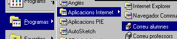 Per fer servir el correu cal accedir, des de qualsevol ordinador del centre, a la vostra bústia que trobareu a Inicio® Programas® Aplicacions Internet® Correu alumnes / Correu professors |